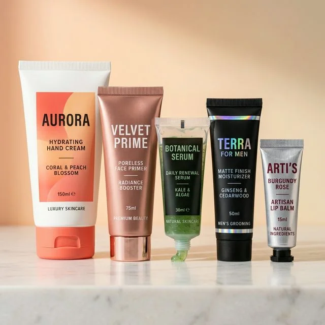 Flexible tubes for toothpaste, hand cream, ointments, and cosmetics. Offset or silkscreen printing.