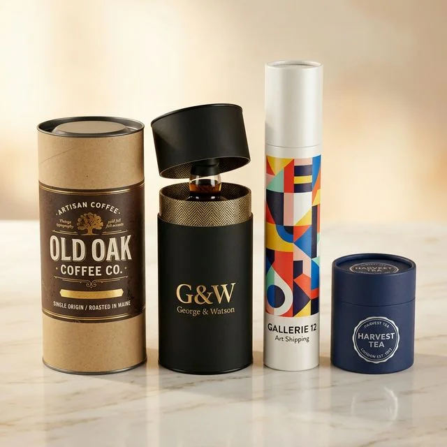 Cylindrical cardboard tubes for whiskey, posters, coffee, and premium gift packaging.